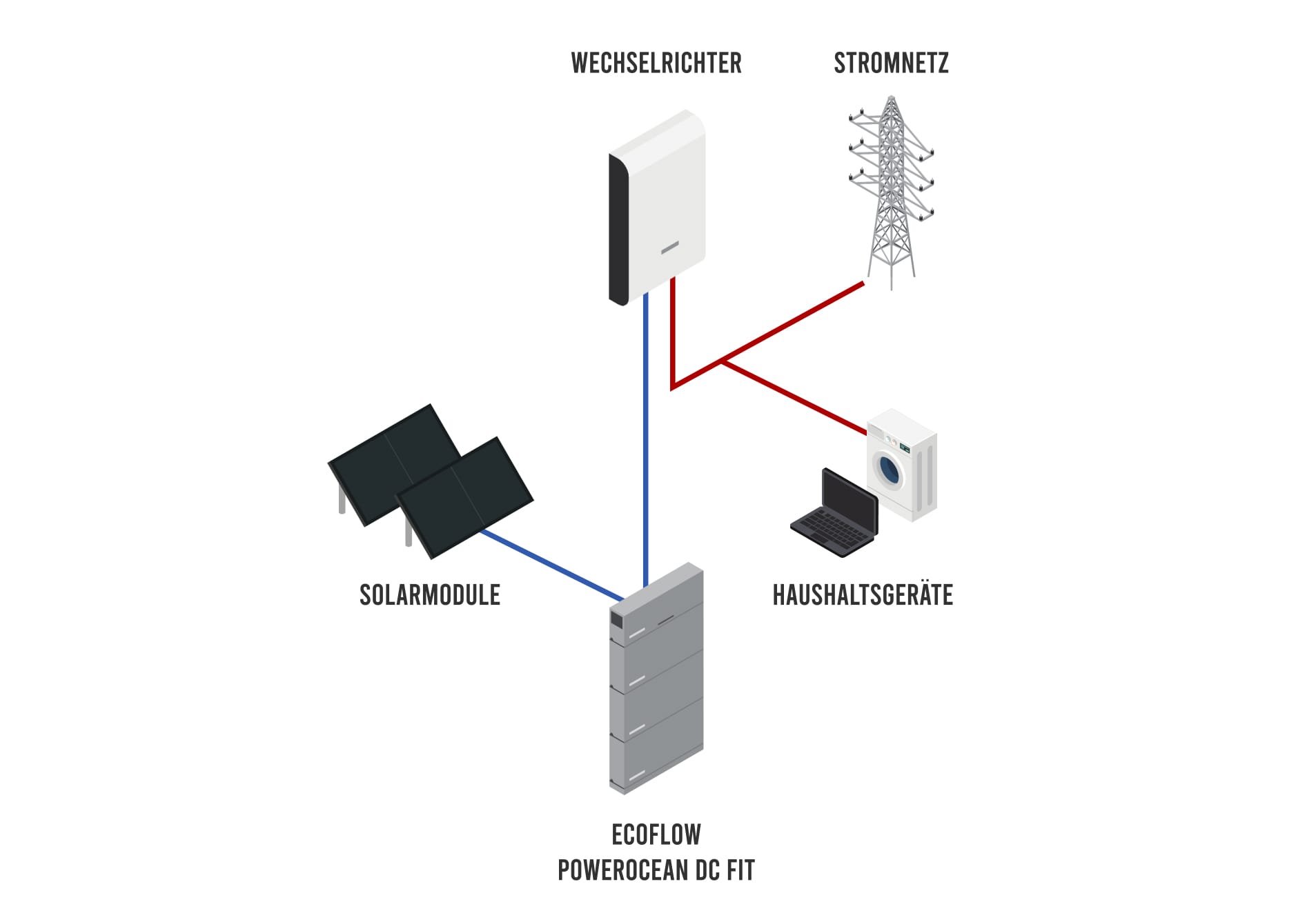 Der PowerOcean DC Fit ist ein hochmoderner Solarstromspeicher, der speziell für bestehende PV-Anlagen von EcoFlow entwickelt wurde. Im Gegensatz zu AC-gekoppelten Speicherlösungen wird er direkt zwischen Solarmodule und Wechselrichter geschaltet.